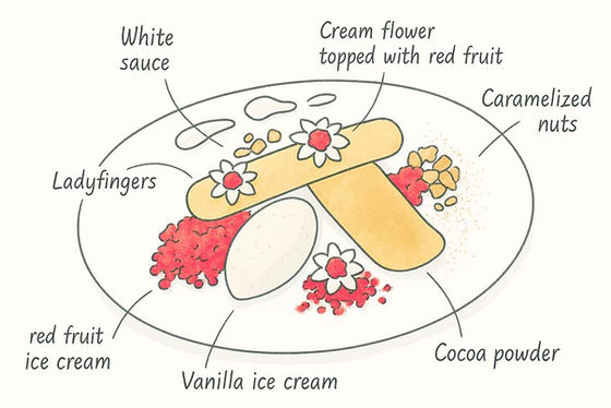 نتعامل مع كل طبق كأنه لوحة فنية للإبداع. نبدأ دائماً برسم مسودة تخطيطية للشكل الذي نتخيله. ثم نترك لمشاعرنا وحدسنا أن يوجها طريقة تقديم الطبق ليعبّر عن نفسه. في كل مرة، تكون العملية عملية تصميم قبل أن تكون جلسة تصوير، حيث نجسّد قصة الطعام بصرياً ونلتقط جوهر النكهة والفن معاً.
